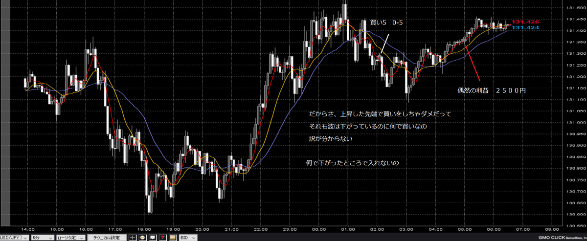 金曜日の朝下がっていたので、上がるだろうと思い買いを入れましたが、